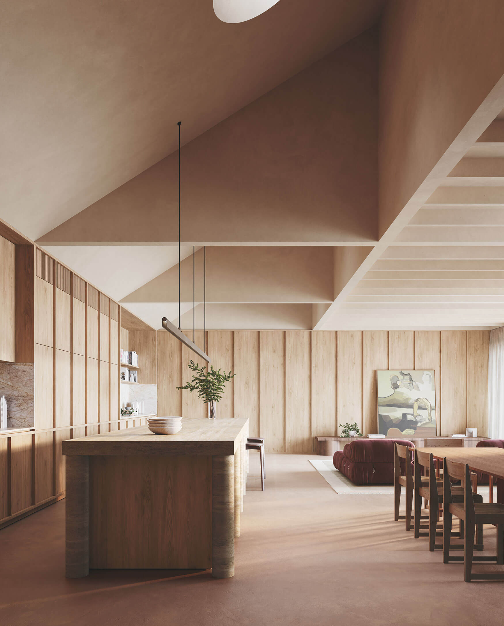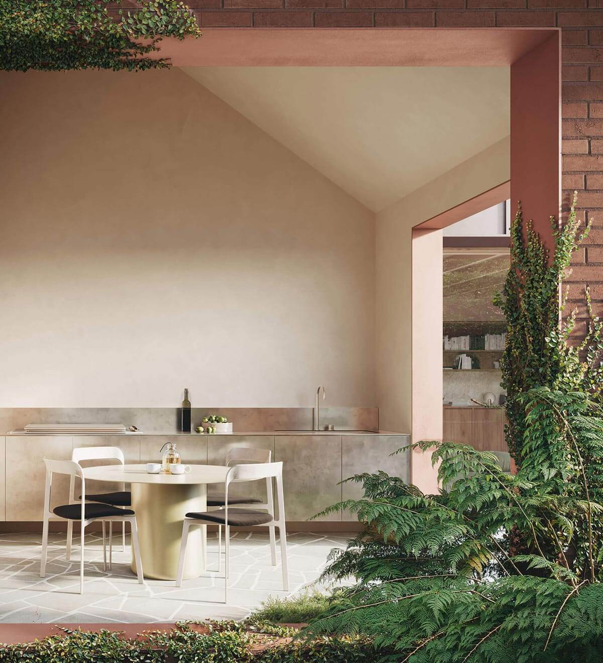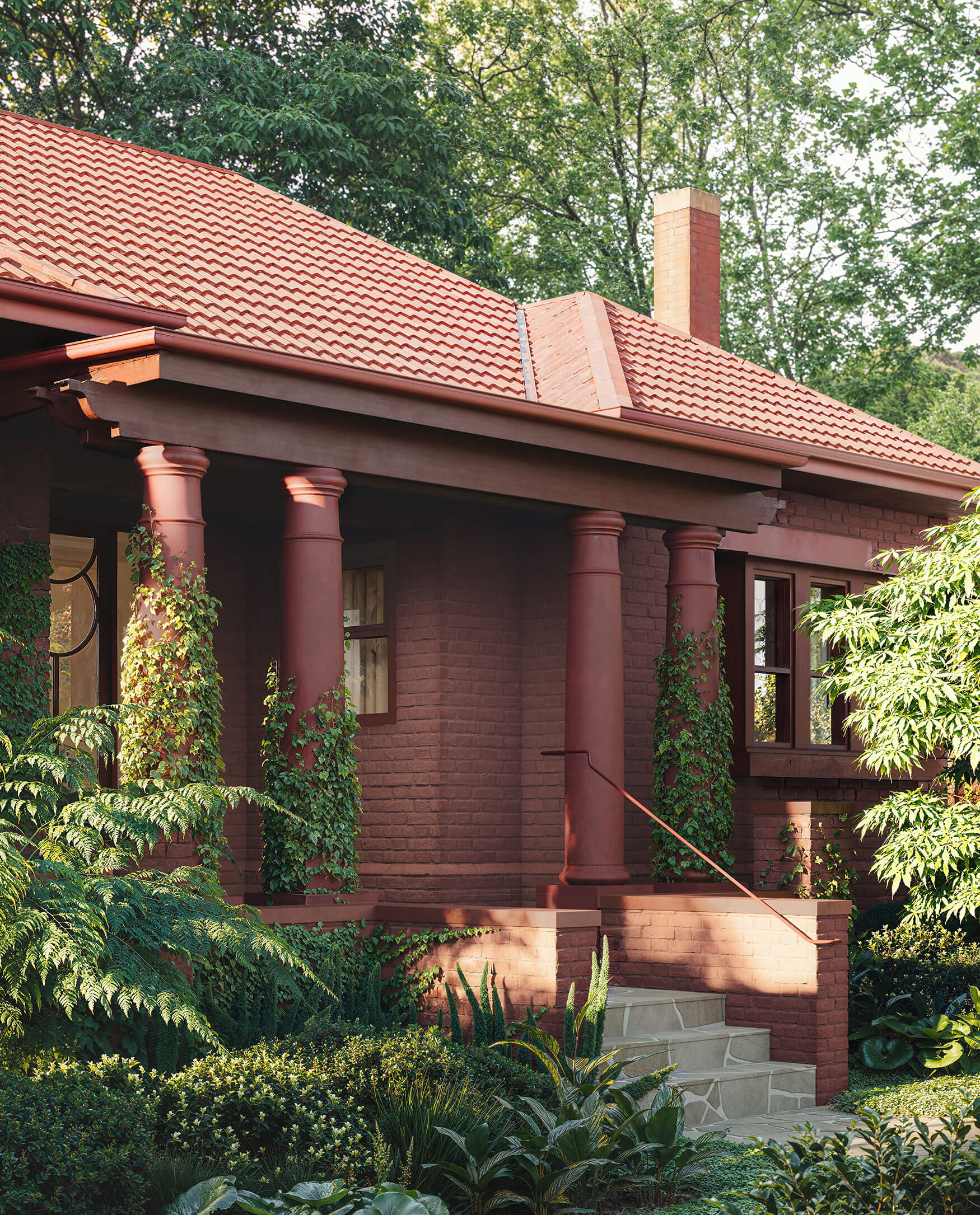 Fernhurst’s existing heritage house has been sensitively restored and thoughtfully expanded – preserving its distinct charm while creating opportunities for heightened liveability. Fostering ever-present connections to nature, the ground-floor flows out to a generous north-facing courtyard, cultivating an established and considered garden experience. Inside, careful attention is paid to preserving the original home’s intricate details, while innovative adjustments to the rooflines infuse the interiors with luminosity and airiness. Wrapped in lush vegetation, the facade blends copper accents with deep terracotta brickwork, promising a beautifully patina with age.